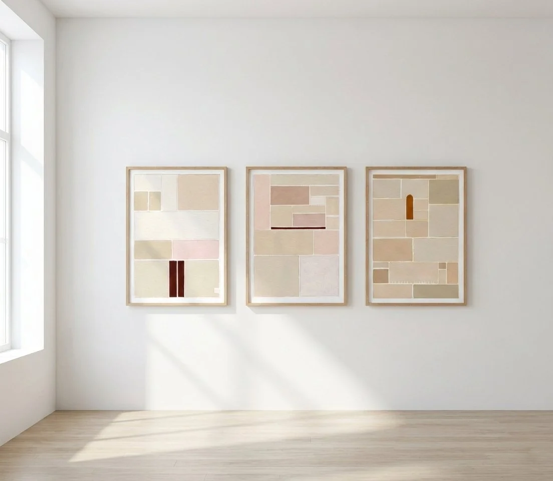 Inspired by Greek ruins, marble, and rock formations, the composition reflects memory, erosion, and timeless strength. Abstract forms and structured surfaces recall architectural remnants—balancing geometry, landscape, and the human trace within natural matter. The print preserves the depth and material presence of the original work, offering a contemporary piece with a quiet, enduring character.